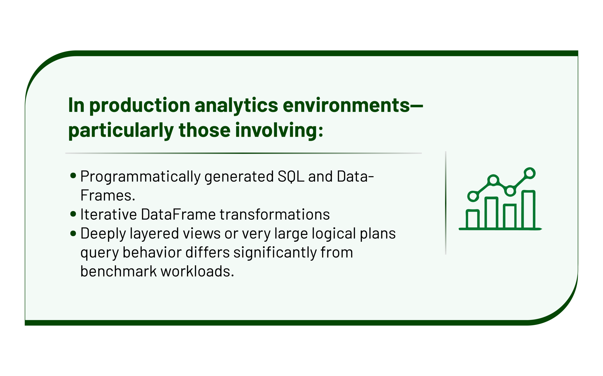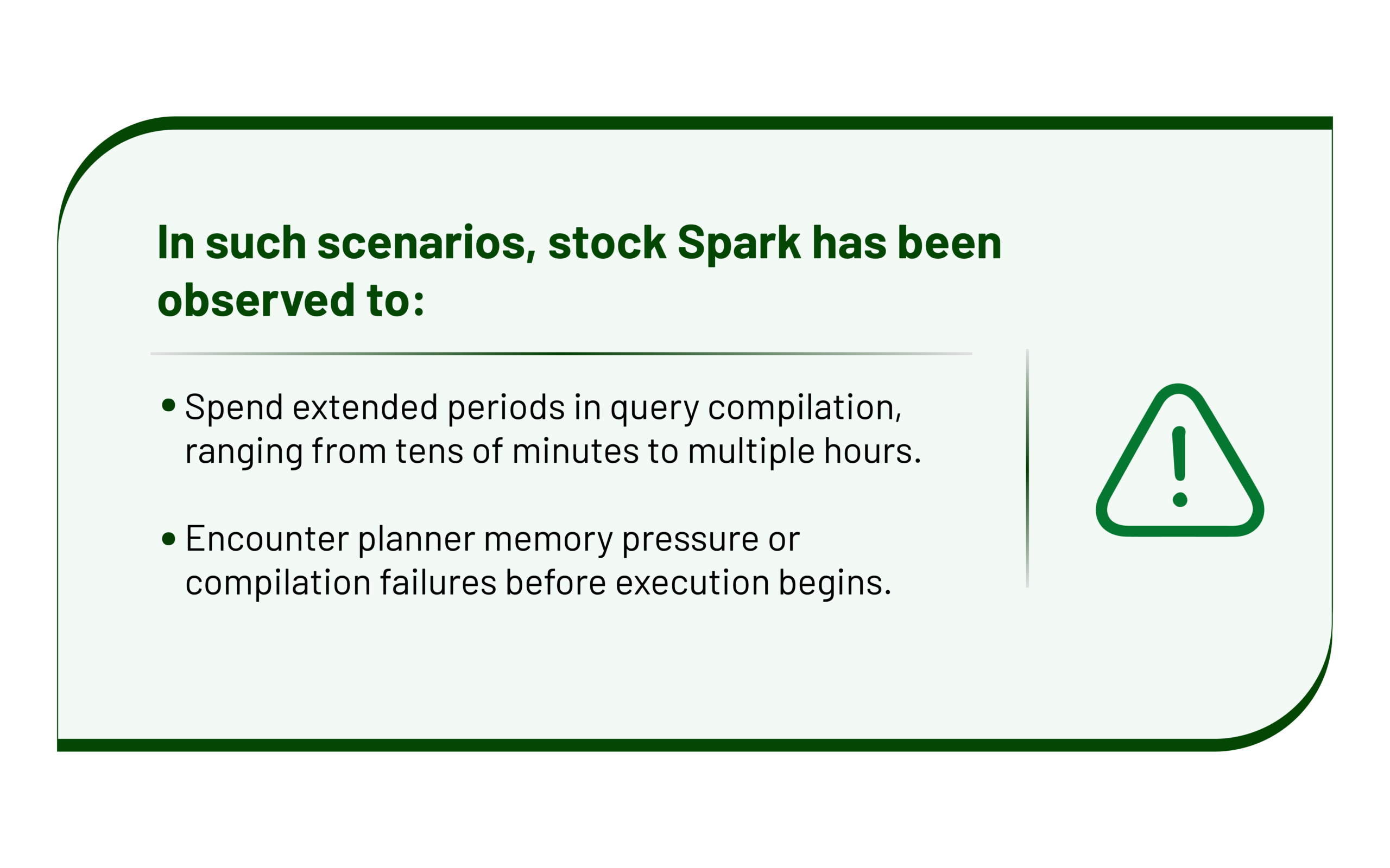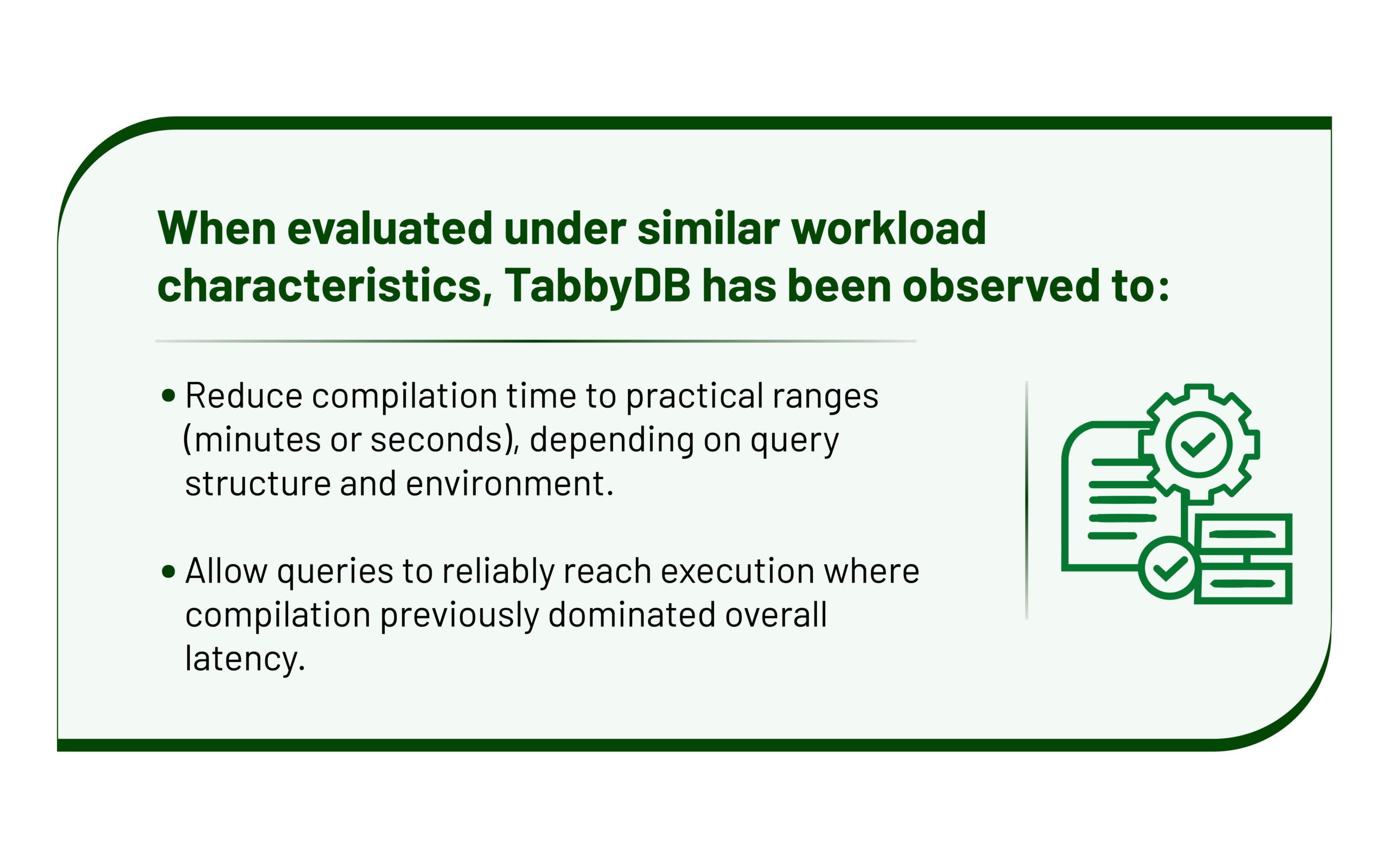 TabbyDB is built for teams running complex, production-critical Apache Spark workloads, where query compilation time, optimizer behavior, and correctness matter as much as execution speed.